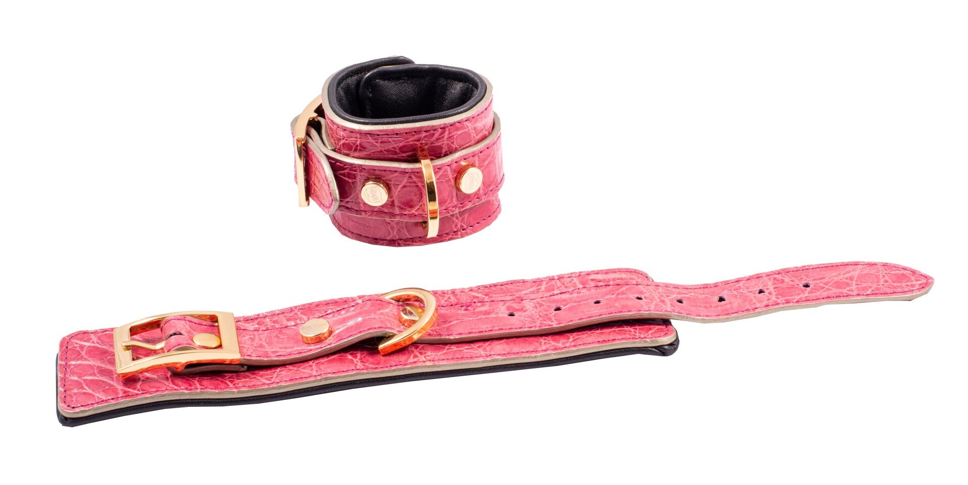 Handcuffs in genuine crocodile leather, lined with nappa leather and lightly padded.